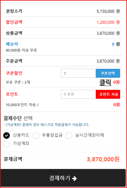 즉, 제품별로 건건히 결제를 하셔야 합니다.