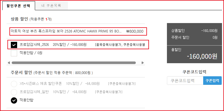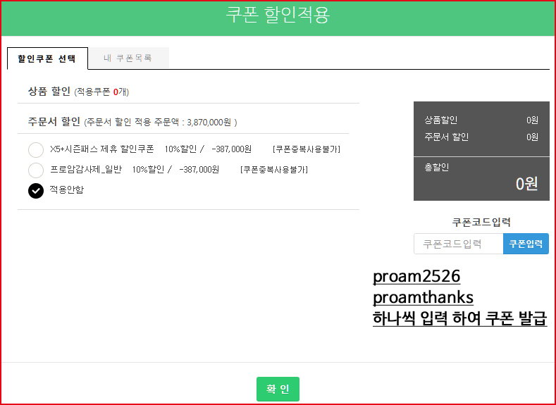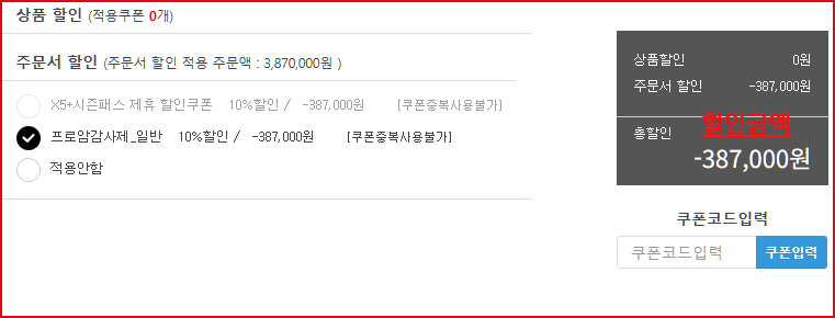 프로암감사제 일반 쿠폰으로 전체 금액에서 10% 할인 적용