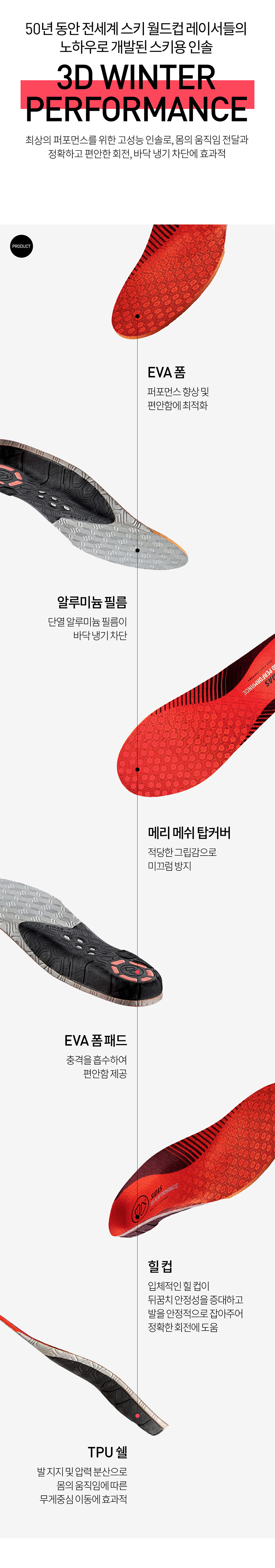 이 인솔은 신체 움직임을 스키로 더욱 효과적으로 전달하고, 3D 형태로 뒤꿈치의 안정성을 높여주며, 더욱 정확한 회전을 가능하게